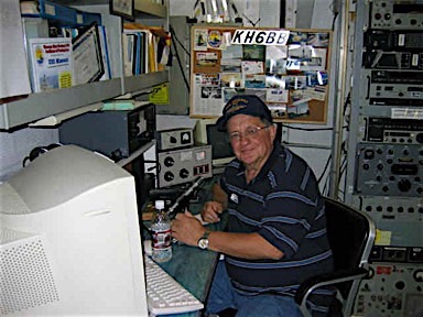 Bob NF7E operating from the Battleship Missouri from Pearl Harbor Hawaii in 2006.