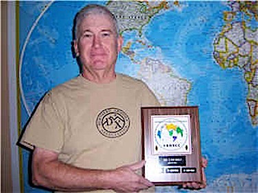 Jim, N6KZ holds his ARRL 5-Band DXCC plaque (with the endorsement plates for 12, 17, and 30 meters).